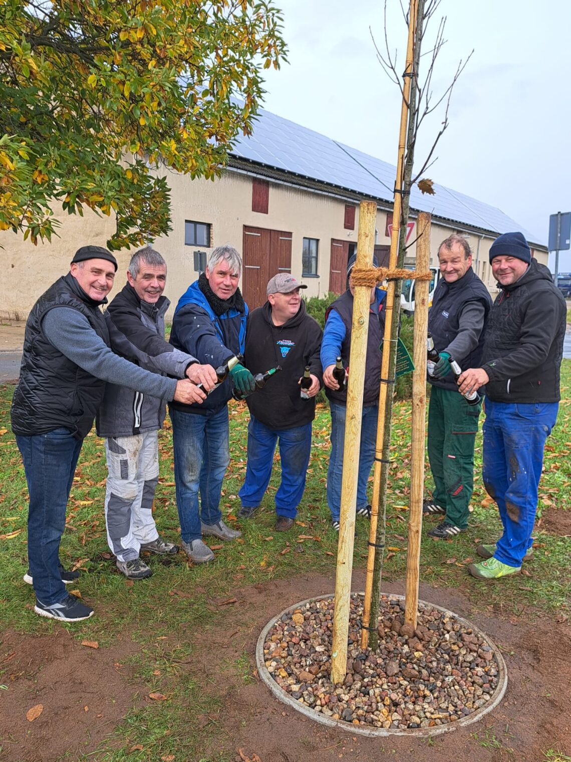 Die Pflanzung wurde von zahlreichen engagierten Helferinnen und Helfern unterstützt. Gemeinsam sorgten wir dafür, dass die jungen Bäume nicht nur fachgerecht gesetzt, sondern auch gut angegossen wurden. Nun hoffen wir, dass beide Roteichen kräftig anwachsen und über viele Jahrzehnte hinweg an ihre Wurzeln und die Geschichte der Orte erinnern.