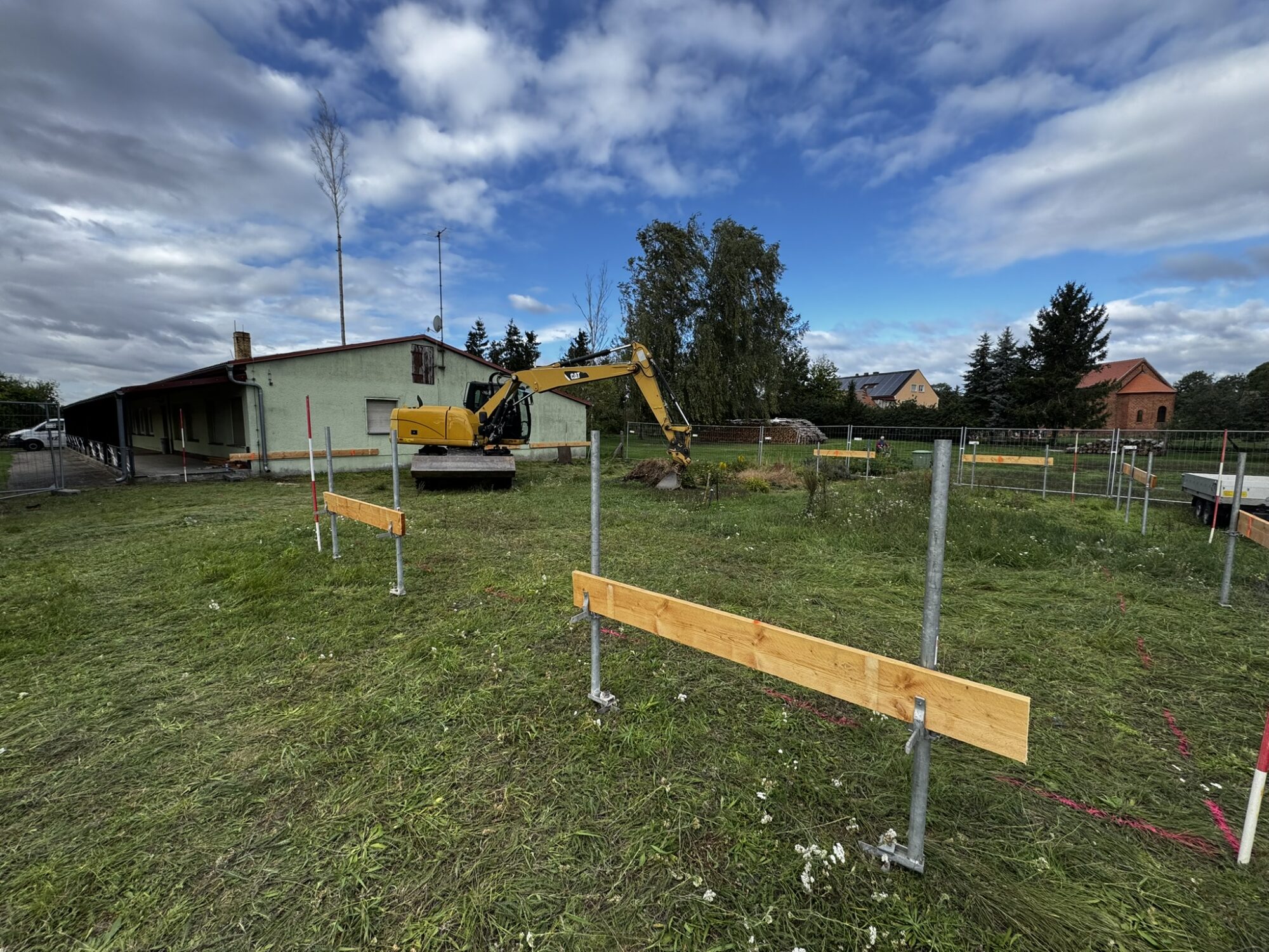 Bereits am Montag, den 15.09.2025 ist der Startschuss für die Bauarbeiten am neu zu errichtenden Feuerwehrgerätehaus in Ziezow gefallen. Die ausführende Firma begann damit, die Achsen abzustecken und den Oberboden abzutragen, damit die Archäologen uneingeschränkten Zugang zur begutachtenden Fläche haben.