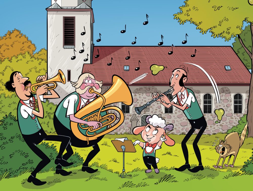 (Fotos: Mario Lorenz, Blasorchester Boßdorf) (Zeichnung: Jan Suski)