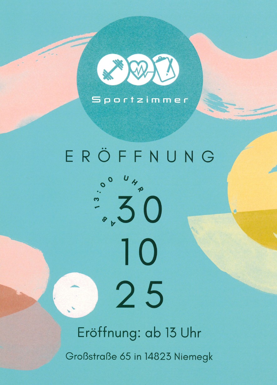 Eröffnung des „Sportzimmer“ + Zu Google Kalender hinzufügen + iCal / Outlook exportieren 00 Tage 00 Stunden 00 Minuten 00 Sekunden Datum 30. Oktober 2025 (Donnerstag) Uhrzeit 13:00 - 19:00 Standort Sportzimmer Großstraße 65, 14823 Niemegk Veranstalter Sportzimmer Niemegk Teile diese Veranstaltung
