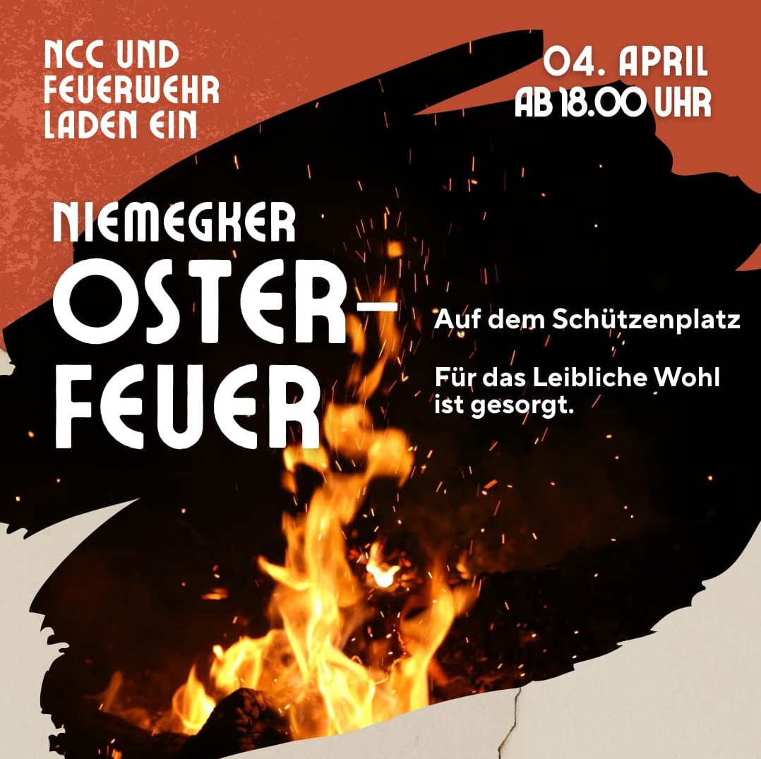 Das Niemegker Osterfeuer findet wieder traditionell auf dem Schützenplatz in Niemegk statt. Los geht es am 04.04.2026 ab 18:00 Uhr. Für das leibliche Wohl ist gesorgt.