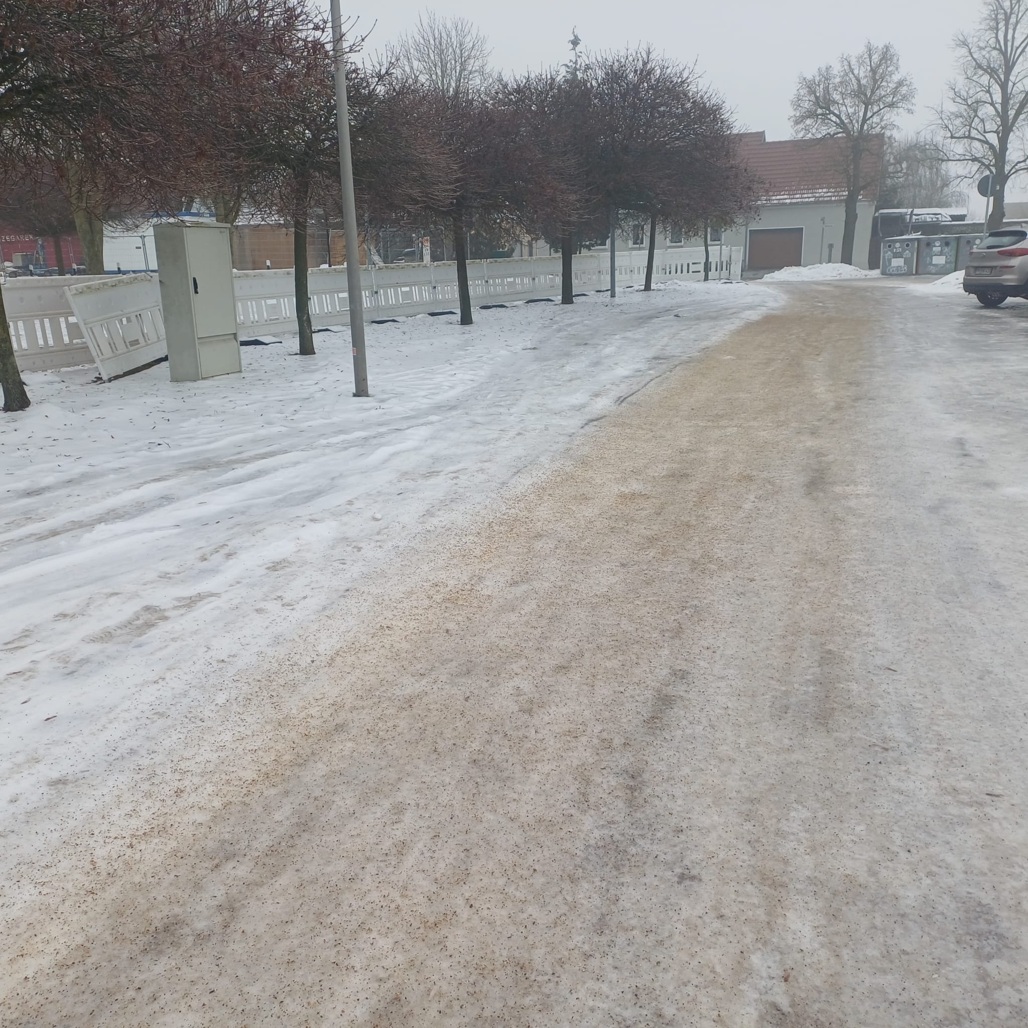Der Bauhof ist mit allen verfügbaren Kräften im Dauereinsatz und bringt kontinuierlich Streugut aus. Aufgrund der extremen Eisbildung zeigt das Streuen derzeit jedoch nur eine mäßige Wirkung. Trotz aller Maßnahmen bleibt es vielerorts glatt und gefährlich.